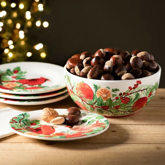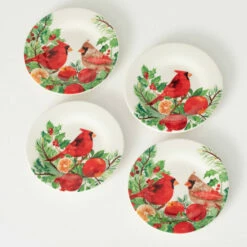 - Dessert plate set featuring cardinals that will add extra cheer to your Christmas festivities
