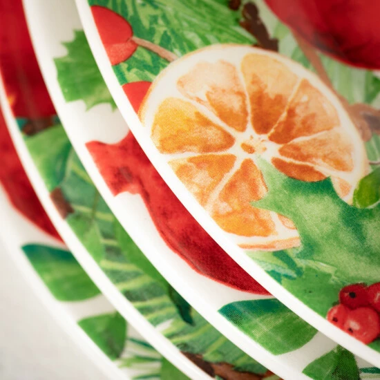 Spread some joy this holiday by serving your Christmas treats on these exclusive dessert plates. With bright, warm colors and detailed art of the holiday birds with pine and fruit, these plates will be the talk of all your Christmas dinners and events. Over the last 52 years, Sullivans has become an industry leader in home decorations. Our brand is rooted in tradition while incorporating modernized trends to keep your home looking up to date with timeless style. Here at Sullivans, we pride ourselves on creating product designs focused on quality and value, ensuring that our customers have access to beautiful products at reasonable price points.
