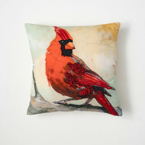This 17.5 inch cardinal pillow features artwork from the Darren Gygi Home Collection. Made of cotton, this beautiful pillow is embellished with textured boucle and comes ready to display on a bench, chair, or sofa. Over the last 52 years, Sullivans has become an industry leader in home decorations. Our brand is rooted in tradition while incorporating modernized trends to keep your home looking up to date with timeless style. Here at Sullivans, we pride ourselves on creating product designs focused on quality and value, ensuring that our customers have access to beautiful products at reasonable price points.