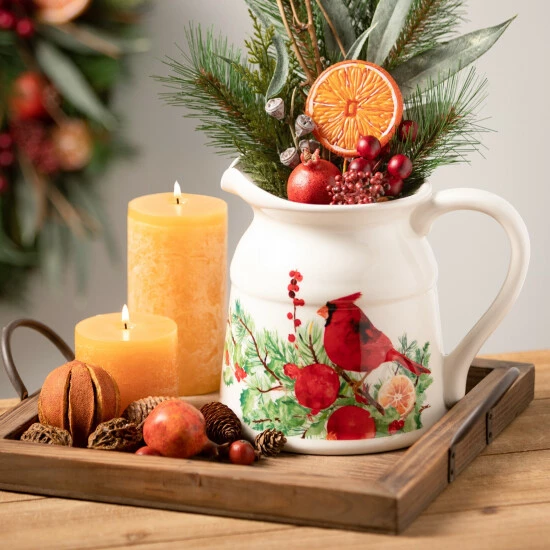 Spread some joy this holiday by serving drinks at your Christmas get-together with this exclusive cardinal pitcher. With bright, warm colors and detailed art of the holiday birds with pine and fruit, this pitcher will be the talk of all your Christmas dinners and events. Over the last 52 years, Sullivans has become an industry leader in home decorations. Our brand is rooted in tradition while incorporating modernized trends to keep your home looking up to date with timeless style. Here at Sullivans, we pride ourselves on creating product designs focused on quality and value, ensuring that our customers have access to beautiful products at reasonable price points.