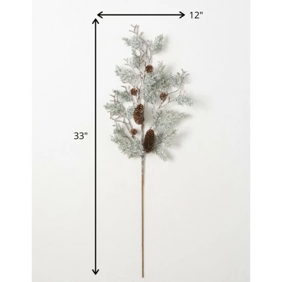 This plastic cedar spray stands 33″ tall and is as beautiful as it is found in nature. The pinecones are the perfect accent to this faux snow-covered decorative winter-inspired branch.