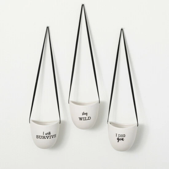 - With funny plant-related phrases, these hanging planters are sure to catch some attention