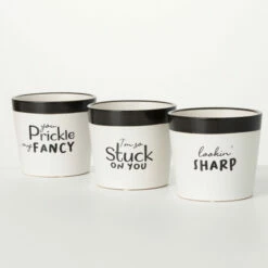 Add some fun to your plant projects with these exclusive text planters. With neutral colors and funny cactus-related puns, these planters will bring joy to any home or garden decor. Over the last 52 years, Sullivans has become an industry leader in home decorations. Our brand is rooted in tradition while incorporating modernized trends to keep your home looking up to date with timeless style. Here at Sullivans, we pride ourselves on creating product designs focused on quality and value, ensuring that our customers have access to beautiful products at reasonable price points.