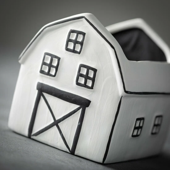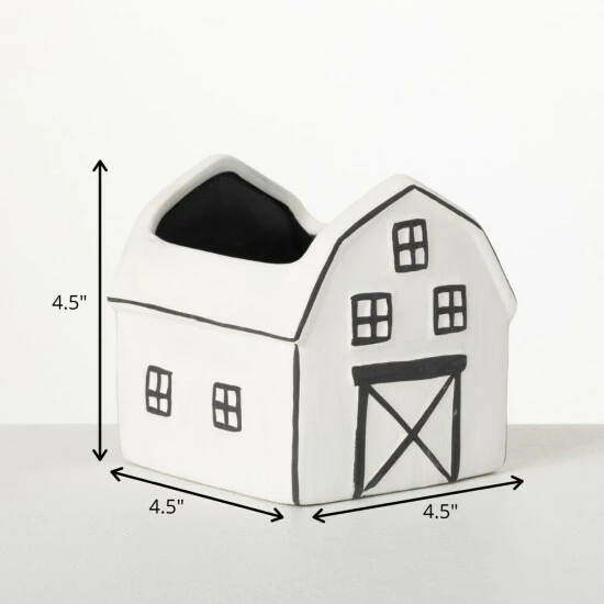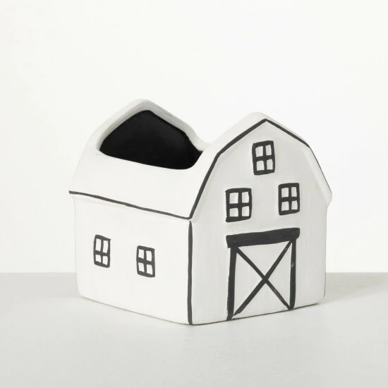 This black and white barn-shaped planter is the perfect “home” for small florals or greens. Crafted of ceramic, it will make an adorable statement in any space. Over the last 52 years, Sullivans has become an industry leader in home decorations. Our brand is rooted in tradition while incorporating modernized trends to keep your home looking up to date with timeless style. Here at Sullivans, we pride ourselves on creating product designs focused on quality and value, ensuring that our customers have access to beautiful products at reasonable price points.