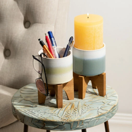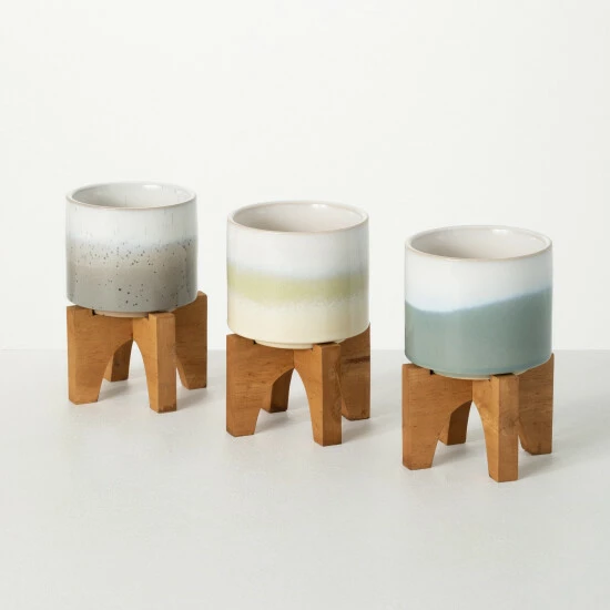 Resting atop a streamlined wooden supports, this set of three textured ceramic planters is ideal for today’s casual lifestyle. Compact and cute, these are a great option for smaller sized plants. Over the last 52 years, Sullivans has become an industry leader in home decorations. Our brand is rooted in tradition while incorporating modernized trends to keep your home looking up to date with timeless style. Here at Sullivans, we pride ourselves on creating product designs focused on quality and value, ensuring that our customers have access to beautiful products at reasonable price points.
