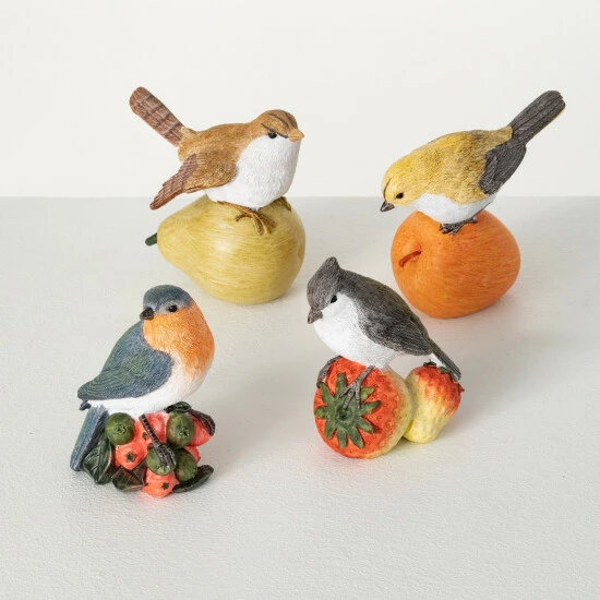 These darling resin figurines feature neutral birds on colorful fruit. Cluster them together on a shelf or use them individually as an accent on a tray, countertop, or in a bookcase. Over the last 52 years, Sullivans has become an industry leader in home decorations. Our brand is rooted in tradition while incorporating modernized trends to keep your home looking up to date with timeless style. Here at Sullivans, we pride ourselves on creating product designs focused on quality and value, ensuring that our customers have access to beautiful products at reasonable price points.
