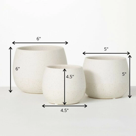 Look no further for the perfect container set for your succulents or floral arrangement! In a refined cream color, this set provides a neutral foundation for your floral creations. The squatty shape makes them perfect for low growing succulents. Over the last 52 years, Sullivans has become an industry leader in home decorations. Our brand is rooted in tradition while incorporating modernized trends to keep your home looking up to date with timeless style. Here at Sullivans, we pride ourselves on creating product designs focused on quality and value, ensuring that our customers have access to beautiful products at reasonable price points.