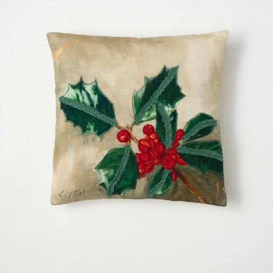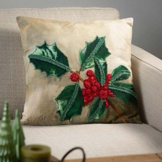 This 17.5 inch square holly Christmas pillow features artwork from the Darren Gygi Home Collection. Embellished with textured boucle on the front, this pillow comes ready to display in your Christmas decor! Over the last 52 years, Sullivans has become an industry leader in home decorations. Our brand is rooted in tradition while incorporating modernized trends to keep your home looking up to date with timeless style. Here at Sullivans, we pride ourselves on creating product designs focused on quality and value, ensuring that our customers have access to beautiful products at reasonable price points.