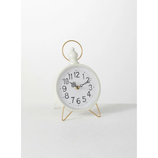 Perfect for a desktop, tabletop or counter top, this iron clock is white to go with virtually any style you choose. At 10.25 high, this piece can really keep time in style.”