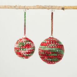 Bring a little homespun comfort to your boho-chic Christmas with the addition of this pair of round braided knit ball ornaments. Cheerful and colored in red, white & green, this cozy collection will lend a nostalgic nod to your decor. Over the last 52 years, Sullivans has become an industry leader in home decorations. Our brand is rooted in tradition while incorporating modernized trends to keep your home looking up to date with timeless style. Here at Sullivans, we pride ourselves on creating product designs focused on quality and value, ensuring that our customers have access to beautiful products at reasonable price points.