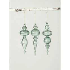Christmas tree lights will shine beautifully through these large finial ornaments of translucent, ribbed glass. In a pale mint hue with shepherd’s hooks and gold cords for hanging. Over the last 52 years, Sullivans has become an industry leader in home decorations. Our brand is rooted in tradition while incorporating modernized trends to keep your home looking up to date with timeless style. Here at Sullivans, we pride ourselves on creating product designs focused on quality and value, ensuring that our customers have access to beautiful products at reasonable price points.