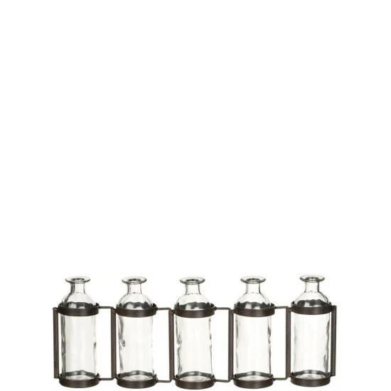What could be better than one glass bottle vase? How about five connected together! This metal and glass collaboration is sleek, yet sophisticated to accommodate buds, pretty floral stems or even herbs.
