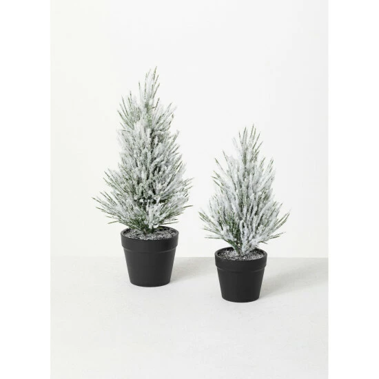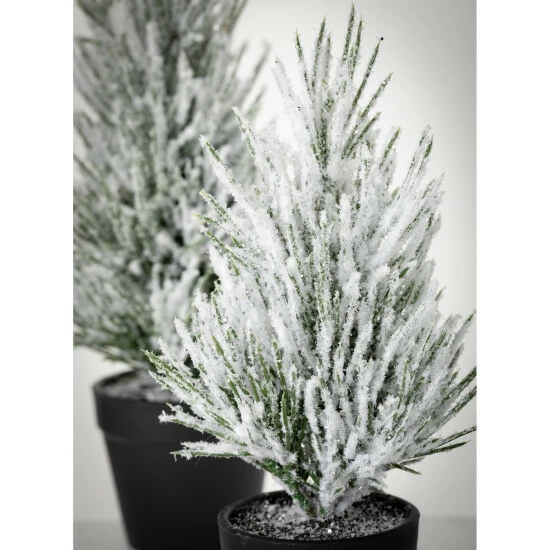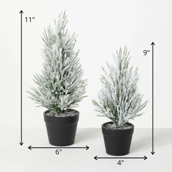 Frosted and ready to decorate your tabletop or maybe aside the mantle, this snow-capped beauty comes in a pair of complementary sizes and arrive ready to place in your favorite planter.