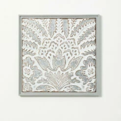 A simple wooden frame surrounds this beautifully embossed floral-patterened artistry. Square in shape and 24.25″ all around, the warm gray tones of this metal masterpiece is perfect for the casual or sophisticated home. Exclusive “exploded artichoke” pattern. Over the last 52 years, Sullivans has become an industry leader in home decorations. Our brand is rooted in tradition while incorporating modernized trends to keep your home looking up to date with timeless style. Here at Sullivans, we pride ourselves on creating product designs focused on quality and value, ensuring that our customers have access to beautiful products at reasonable price points.