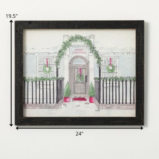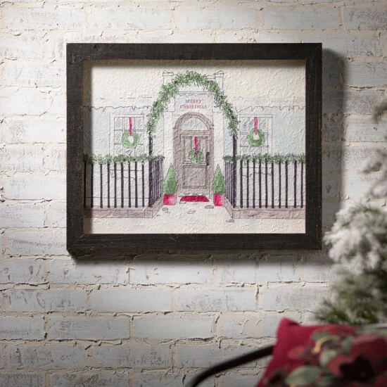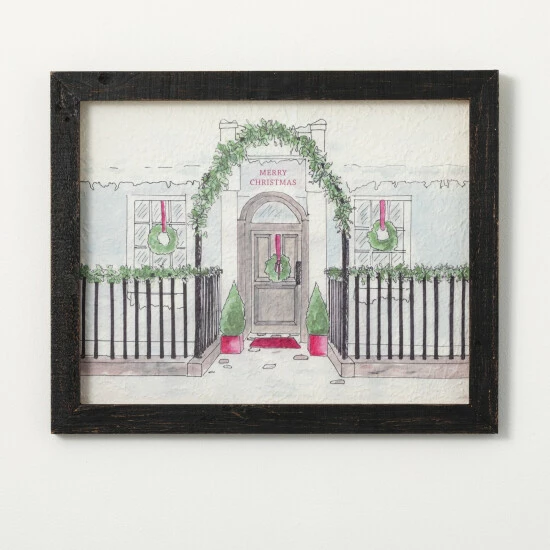 This Christmas wall decor features a watercolor front door on textured paper. This Christmas wall art adds a subtle cheer to your space. Exclusive to Sullivans. Over the last 52 years, Sullivans has become an industry leader in home decorations. Our brand is rooted in tradition while incorporating modernized trends to keep your home looking up to date with timeless style. Here at Sullivans, we pride ourselves on creating product designs focused on quality and value, ensuring that our customers have access to beautiful products at reasonable price points.