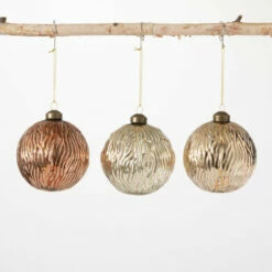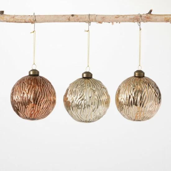 Gilded in opalescent metallic shades ranging from gold to copper, this set of three textured ball ornaments will add style & sophistication to your tree. The classic round shapes dipped in lustrous finishes are an instant-classic! Over the last 52 years, Sullivans has become an industry leader in home decorations. Our brand is rooted in tradition while incorporating modernized trends to keep your home looking up to date with timeless style. Here at Sullivans, we pride ourselves on creating product designs focused on quality and value, ensuring that our customers have access to beautiful products at reasonable price points.
