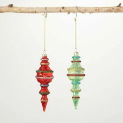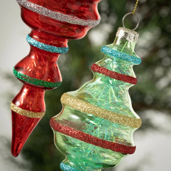 Shaped from glass in festive & bright seasonal colors, this pair of finials are dusted with glitter for an added dose of whimsy. Get your hands on this great pair of holiday ornaments and your tree will have an even more charming look than ever before. Over the last 52 years, Sullivans has become an industry leader in home decorations. Our brand is rooted in tradition while incorporating modernized trends to keep your home looking up to date with timeless style. Here at Sullivans, we pride ourselves on creating product designs focused on quality and value, ensuring that our customers have access to beautiful products at reasonable price points.