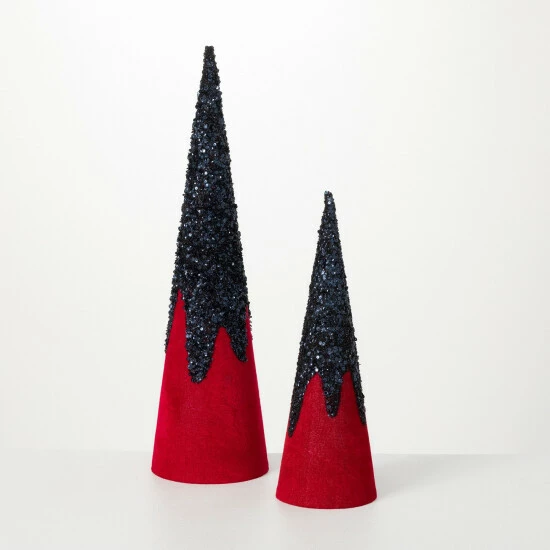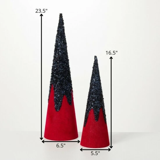 Make a glamorous statement with these cone Christmas trees exclusive to Sullivans. These red cone trees are dripping with black glitter and are sure to elevate your holiday decor! Over the last 52 years, Sullivans has become an industry leader in home decorations. Our brand is rooted in tradition while incorporating modernized trends to keep your home looking up to date with timeless style. Here at Sullivans, we pride ourselves on creating product designs focused on quality and value, ensuring that our customers have access to beautiful products at reasonable price points.