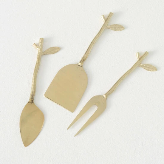 Get your cheese and charcuterie boards ready for your next get-together and dazzle your guests not just with your tasty array, but also with your stylish new set of serving utensils! Dipped in a warm golden-brass finish, this twig and leaf-handled set makes a great hostess gift. Over the last 52 years, Sullivans has become an industry leader in home decorations. Our brand is rooted in tradition while incorporating modernized trends to keep your home looking up to date with timeless style. Here at Sullivans, we pride ourselves on creating product designs focused on quality and value, ensuring that our customers have access to beautiful products at reasonable price points.