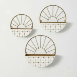 Add some “wow” to your walls with these one-of-a-kind patterned metal wall pockets. This set of three is highlighted with a decorative sunburst pattern on the backs, and each with brushed gold detailing atop a creamy, whitewash rub. Over the last 52 years, Sullivans has become an industry leader in home decorations. Our brand is rooted in tradition while incorporating modernized trends to keep your home looking up to date with timeless style. Here at Sullivans, we pride ourselves on creating product designs focused on quality and value, ensuring that our customers have access to beautiful products at reasonable price points.