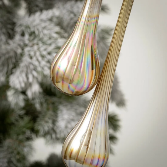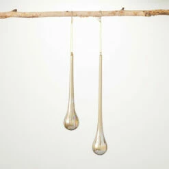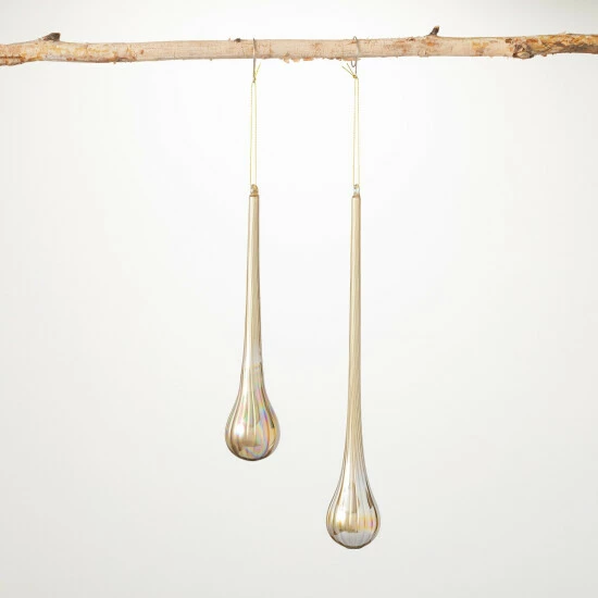 Shaped to mimic an elongated, dripping teardrop, this sophisticated hand-blown glass ornament is certainly something to behold. Deep majestic golden hues add a regal touch to this pretty pair. Over the last 52 years, Sullivans has become an industry leader in home decorations. Our brand is rooted in tradition while incorporating modernized trends to keep your home looking up to date with timeless style. Here at Sullivans, we pride ourselves on creating product designs focused on quality and value, ensuring that our customers have access to beautiful products at reasonable price points.