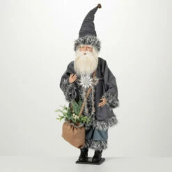 - Decorate with ease this holiday season with this gray faux fur earthy Santa figure