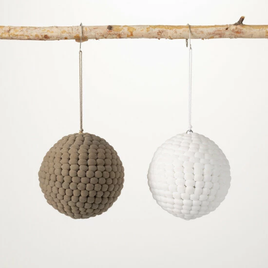 Add some playful panache to your seasonal spirit with the addition of this pair of round pompom ball ornaments. Warm neutral gray is paired with crisp white to conjure up a scandi-mod vibe that fits comfortably into any style surrounding. Over the last 52 years, Sullivans has become an industry leader in home decorations. Our brand is rooted in tradition while incorporating modernized trends to keep your home looking up to date with timeless style. Here at Sullivans, we pride ourselves on creating product designs focused on quality and value, ensuring that our customers have access to beautiful products at reasonable price points.