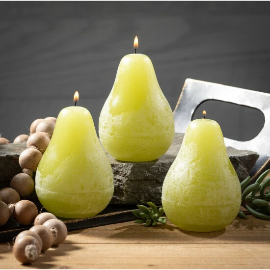 - Clean burning, odorless, smokeless, hypoallergenic, environmentally friendly, water clear and real wax pear-shaped candle