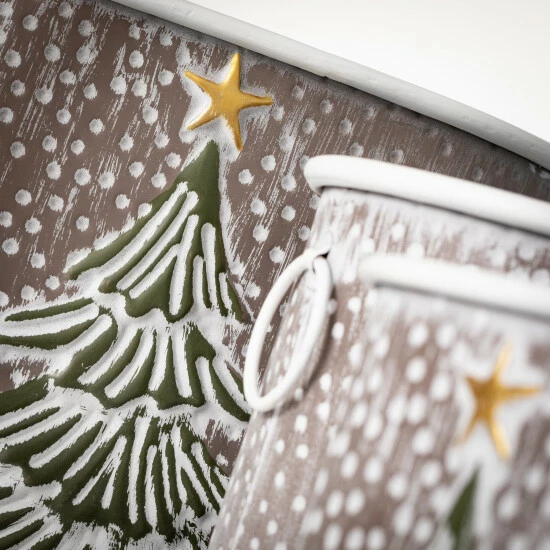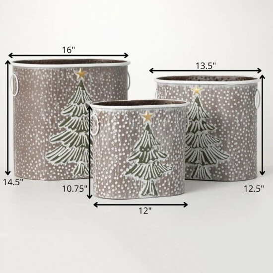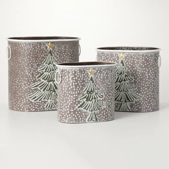 Brandishing a soft washed finish that features a rich evergreen tree with a golden star tree-topper, this trio of metal containers are ideal for holiday decorating. Available in three separate heights, these spacious canisters are handy for so many uses! Over the last 52 years, Sullivans has become an industry leader in home decorations. Our brand is rooted in tradition while incorporating modernized trends to keep your home looking up to date with timeless style. Here at Sullivans, we pride ourselves on creating product designs focused on quality and value, ensuring that our customers have access to beautiful products at reasonable price points.