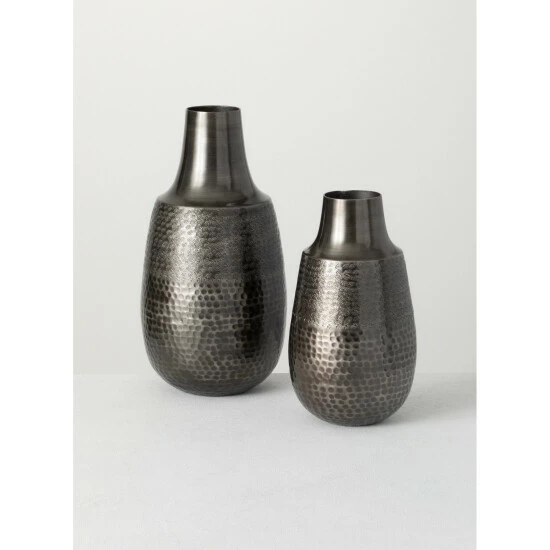 With a unique hammered finish, this pair will make a great vessel for many of stunning faux floral masterpieces. The look is crisp and modern, but with a classic edge.