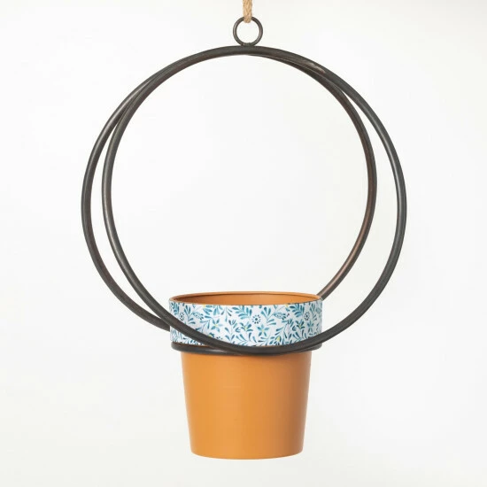 Hanging gracefully upon the wall, this shapely metal frame brilliantly holds a terracotta-style planter. Applied to the exterior of this pot is an exclusive decorative pattern for added texture. Over the last 52 years, Sullivans has become an industry leader in home decorations. Our brand is rooted in tradition while incorporating modernized trends to keep your home looking up to date with timeless style. Here at Sullivans, we pride ourselves on creating product designs focused on quality and value, ensuring that our customers have access to beautiful products at reasonable price points.
