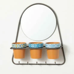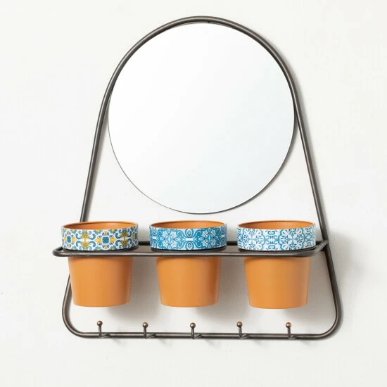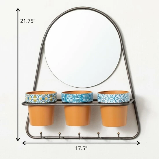 For a stunning statement of straightforward form and design, we suggest this circular wall mirror with triple planters. Framed in metal with each pot featuring a patterned exterior, this combination will grace the wall at 17.5″ x 21.75″. Over the last 52 years, Sullivans has become an industry leader in home decorations. Our brand is rooted in tradition while incorporating modernized trends to keep your home looking up to date with timeless style. Here at Sullivans, we pride ourselves on creating product designs focused on quality and value, ensuring that our customers have access to beautiful products at reasonable price points.