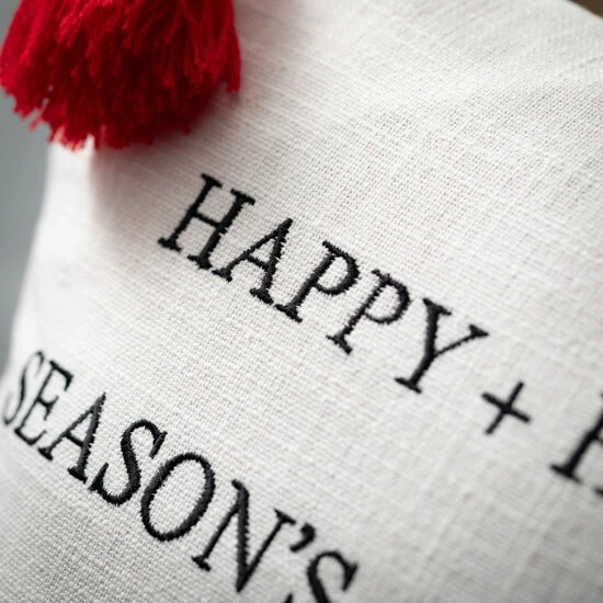 Decorate your home this holiday with this exclusive holiday text pillow. With bright seasonal colors, soft tassels, and fun Christmas text, this pillow will make the perfect addition to any classic winter decor. Over the last 52 years, Sullivans has become an industry leader in home decorations. Our brand is rooted in tradition while incorporating modernized trends to keep your home looking up to date with timeless style. Here at Sullivans, we pride ourselves on creating product designs focused on quality and value, ensuring that our customers have access to beautiful products at reasonable price points.