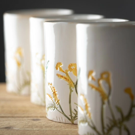 The artwork that graces this set of four patterned mugs, is exclusive to Sullivans. The warmth of the soft cream coloring with hand-painted details will look right at home in your kitchen or dining room. Over the last 52 years, Sullivans has become an industry leader in home decorations. Our brand is rooted in tradition while incorporating modernized trends to keep your home looking up to date with timeless style. Here at Sullivans, we pride ourselves on creating product designs focused on quality and value, ensuring that our customers have access to beautiful products at reasonable price points.