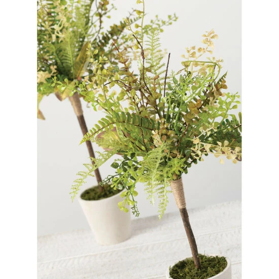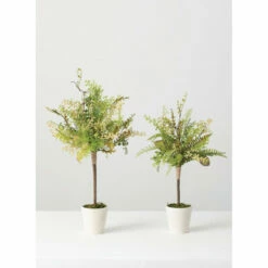 Perfectly manicured; these topiaries come ready to display with no maintenance required. Looking great season after season; you can incorporate this handsome option into any room. Dimensions: 14″L x14″W x25.5″H; 12″L x12″W x20.5″H.