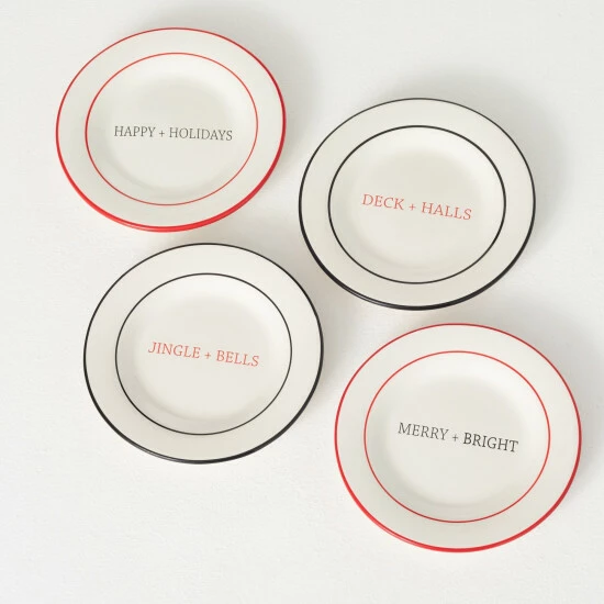 Spread some joy this holiday by serving your Christmas treats on these exclusive dessert plates. With fun seasonal text and classic seasonal colors, these plates will be the talk of all your Christmas dinners and events. Over the last 52 years, Sullivans has become an industry leader in home decorations. Our brand is rooted in tradition while incorporating modernized trends to keep your home looking up to date with timeless style. Here at Sullivans, we pride ourselves on creating product designs focused on quality and value, ensuring that our customers have access to beautiful products at reasonable price points.