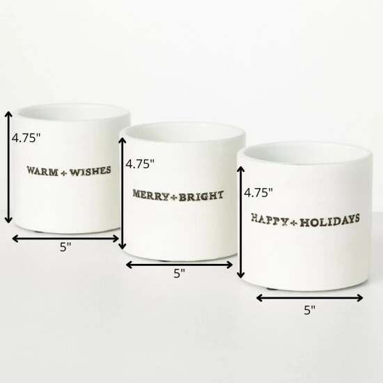 Display fun holiday arrangements this season with these exclusive modern typography containers. Made of creamy white cement with embossed holiday text, these containers are the perfect final touch to any Christmas decor. Over the last 52 years, Sullivans has become an industry leader in home decorations. Our brand is rooted in tradition while incorporating modernized trends to keep your home looking up to date with timeless style. Here at Sullivans, we pride ourselves on creating product designs focused on quality and value, ensuring that our customers have access to beautiful products at reasonable price points.