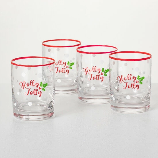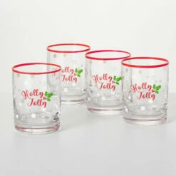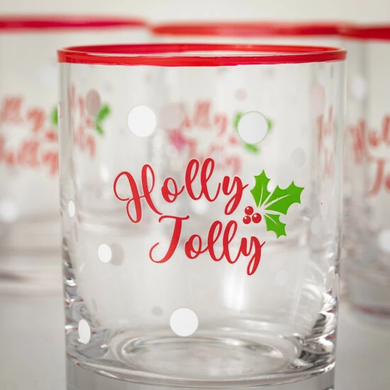 - Holly Jolly glassware will add some extra cheer to your holiday festivities