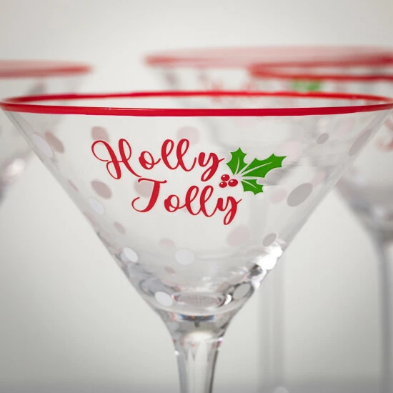 - Holly Jolly glassware will add some extra cheer to your holiday festivities