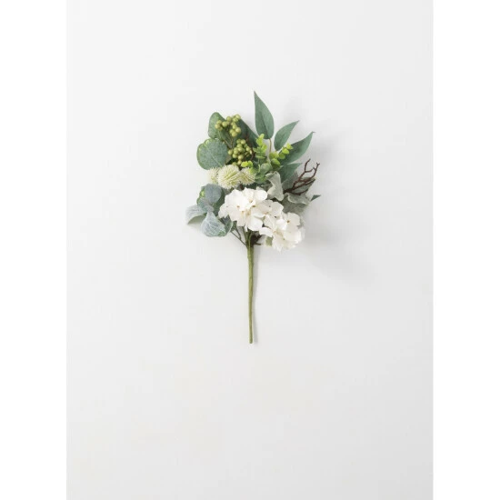 Light, airy, and sophisticated, elegance exudes from this lovely floral collection. Off-setting the various shades of green foliage, is lively berries, lush greens, and to top it off —Β hydrangeas.
