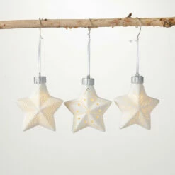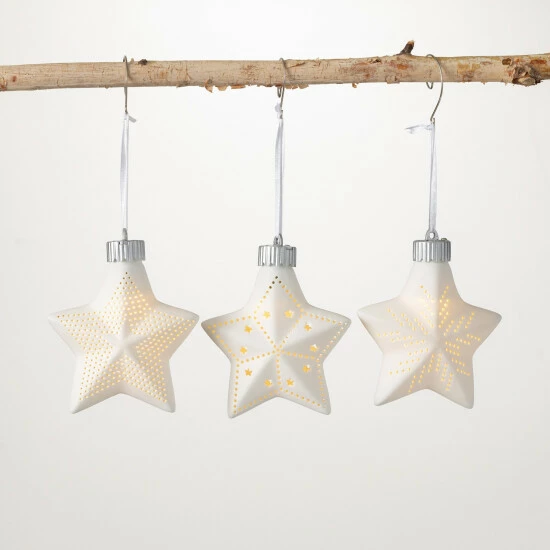 Add an extra little twinkle to your tree this holiday with this illuminated trio of stars, exclusively designed for Sullivans. Emitting a soft white light, this set is crafted of white ceramic and features exquisitely detailed stellate shapes. Over the last 52 years, Sullivans has become an industry leader in home decorations. Our brand is rooted in tradition while incorporating modernized trends to keep your home looking up to date with timeless style. Here at Sullivans, we pride ourselves on creating product designs focused on quality and value, ensuring that our customers have access to beautiful products at reasonable price points.