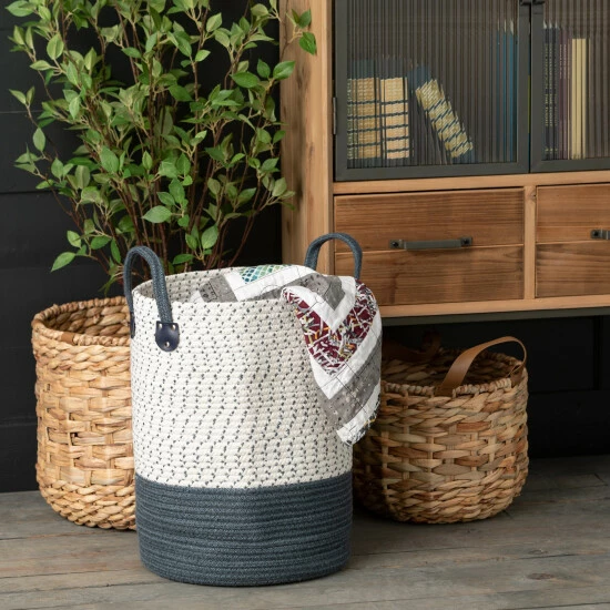 The perfect earthy accent for today’s decor, this pair of woven tall storage baskets will look at home in almost any setting. Complete with a simple gray and white subtle finish and coordinating handles, this set of two is as useful as they are totally stylish. Over the last 52 years, Sullivans has become an industry leader in home decorations. Our brand is rooted in tradition while incorporating modernized trends to keep your home looking up to date with timeless style. Here at Sullivans, we pride ourselves on creating product designs focused on quality and value, ensuring that our customers have access to beautiful products at reasonable price points.