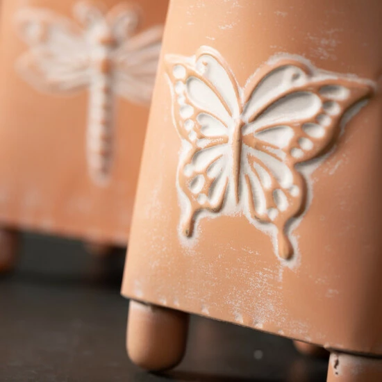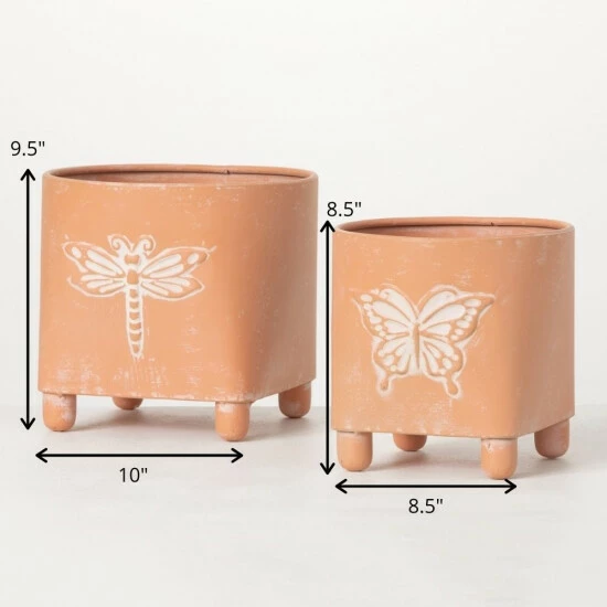 Fitting for the garden, covered porch, or interior of the home, this pair of coordinating planters adds just the right amount of whimsy. The fronts each feature either the dragonfly or butterfly, and are crafted of metal with a faux terracotta finish that is brushed with a touch of whitewashing. Over the last 52 years, Sullivans has become an industry leader in home decorations. Our brand is rooted in tradition while incorporating modernized trends to keep your home looking up to date with timeless style. Here at Sullivans, we pride ourselves on creating product designs focused on quality and value, ensuring that our customers have access to beautiful products at reasonable price points.