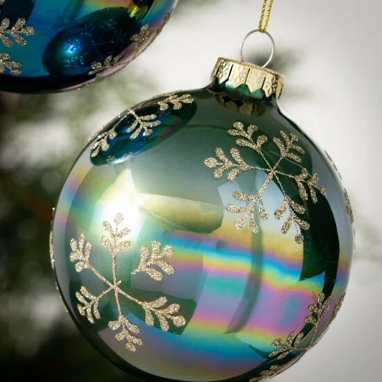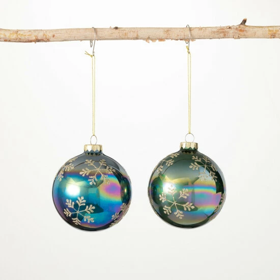 Embellished with golden glittered snowflake accents on the surface, this pair of bulb glass ornaments really add glitz & gleam. Finished with a jewel-tone base color mix of blue & green, this combination refreshes a classic look with handsome style. Over the last 52 years, Sullivans has become an industry leader in home decorations. Our brand is rooted in tradition while incorporating modernized trends to keep your home looking up to date with timeless style. Here at Sullivans, we pride ourselves on creating product designs focused on quality and value, ensuring that our customers have access to beautiful products at reasonable price points.