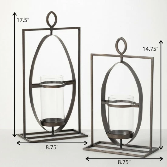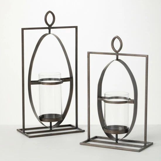 Encased in a graceful metal framework sits a base with a delicate glass sleeve. This base is home to one of your classic pillar candles. Available in two sizes as a set, they look lovely clustered together or scattered about individually. Over the last 52 years, Sullivans has become an industry leader in home decorations. Our brand is rooted in tradition while incorporating modernized trends to keep your home looking up to date with timeless style. Here at Sullivans, we pride ourselves on creating product designs focused on quality and value, ensuring that our customers have access to beautiful products at reasonable price points.