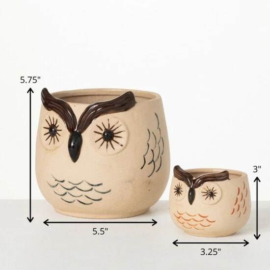 Paired up to be the perfect accent to a desk or a small wall shelf, these ceramic owl planters are a hoot. With a unique sand-textured finish they’re so adorable you’ll want one for every room! Over the last 52 years, Sullivans has become an industry leader in home decorations. Our brand is rooted in tradition while incorporating modernized trends to keep your home looking up to date with timeless style. Here at Sullivans, we pride ourselves on creating product designs focused on quality and value, ensuring that our customers have access to beautiful products at reasonable price points.