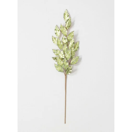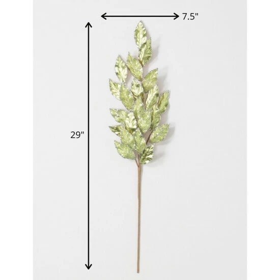 Shimmering and stunning, this leaf spray features silver glitter edging and beautiful green sparkling beads. The sheen of the polyester is the perfect compliment for this 29″ tall spray.