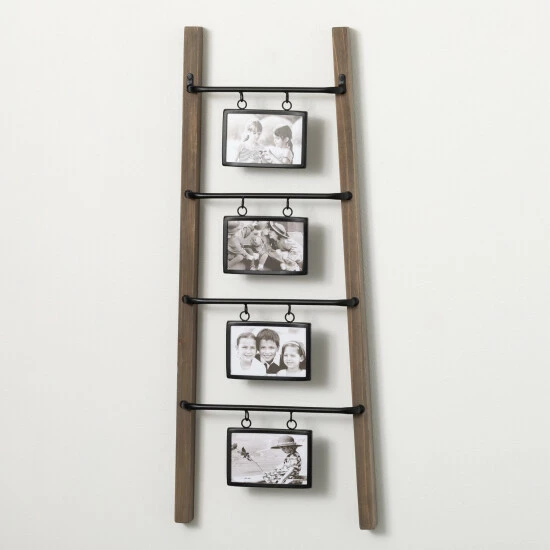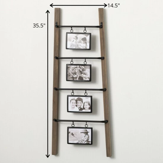In the days of posting to social media, we tend to forget the simple joy a grouping of photographs can bring to our lives. This ladder-style design measures 14.5″ x 35.5″ and is the ideal spot for four of your Instagram-worthy faves. Crafted of simple metal detailing and weathered wood, you can set this decorative piece atop a surface and lean against your wall to enjoy year-round. Over the last 52 years, Sullivans has become an industry leader in home decorations. Our brand is rooted in tradition while incorporating modernized trends to keep your home looking up to date with timeless style. Here at Sullivans, we pride ourselves on creating product designs focused on quality and value, ensuring that our customers have access to beautiful products at reasonable price points.
