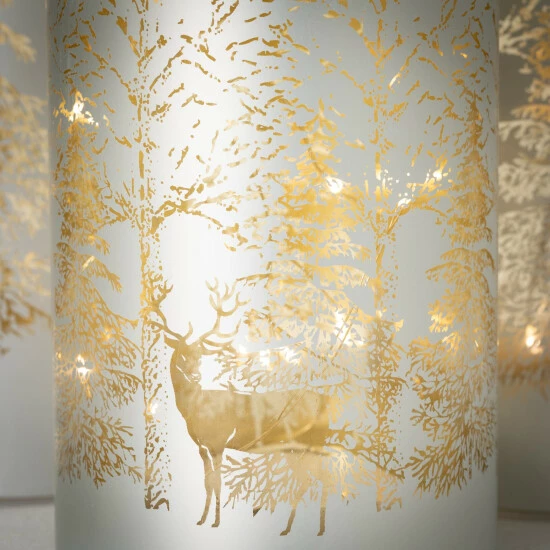 This set of 3 LED silver lighted cylinders features a beautiful etching of a winter scene that glows gold when lit. Measuring 6″, 8″, and 10″ high, this glass Christmas lighting is sure to add some elegance to your Holiday decorating. Over the last 52 years, Sullivans has become an industry leader in home decorations. Our brand is rooted in tradition while incorporating modernized trends to keep your home looking up to date with timeless style. Here at Sullivans, we pride ourselves on creating product designs focused on quality and value, ensuring that our customers have access to beautiful products at reasonable price points.
