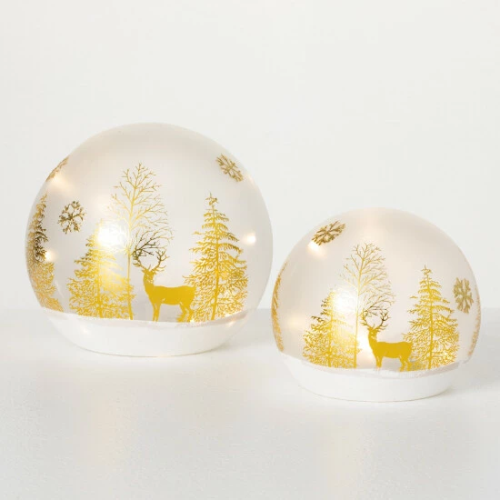 This beautiful set of LED lighted domes adds an elegance to your Holiday decor. Etched with a gold winter scene, these exclusive domes are perfect for Christmas and themed to stay on display during the winter months. They measure 4.5″ and 5.5″ high and add a glow to your Holiday style. Over the last 52 years, Sullivans has become an industry leader in home decorations. Our brand is rooted in tradition while incorporating modernized trends to keep your home looking up to date with timeless style. Here at Sullivans, we pride ourselves on creating product designs focused on quality and value, ensuring that our customers have access to beautiful products at reasonable price points.